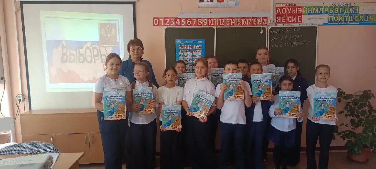 08.12.2025Сегодня, в Багаевской средней школе №1 в 4 Б классе, для будущих избирателей были организованы выборы Воеводы Дона. Председатель территориальной избирательной комиссии Елена Маслянко и ребята погрузились в мир сказочных выборов. Здесь каждый мог попробовать себя в роли избирателя или кандидата. Мальчишки и девчонки узнали: кто избиратель, наблюдатель, член избирательной комиссии.